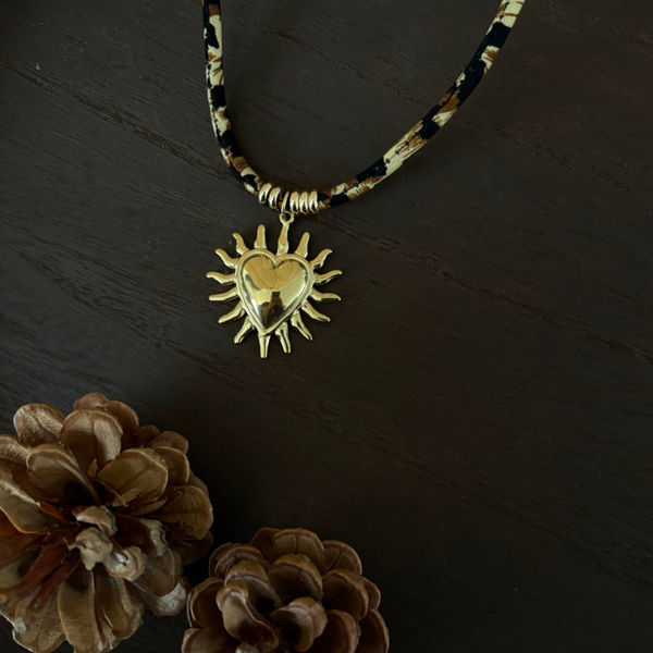 Ce collier fantaisie intemporelle et durable avec son tissu et son pendentif en acier inoxydable, saura vous donner une touche de style à petit prix.