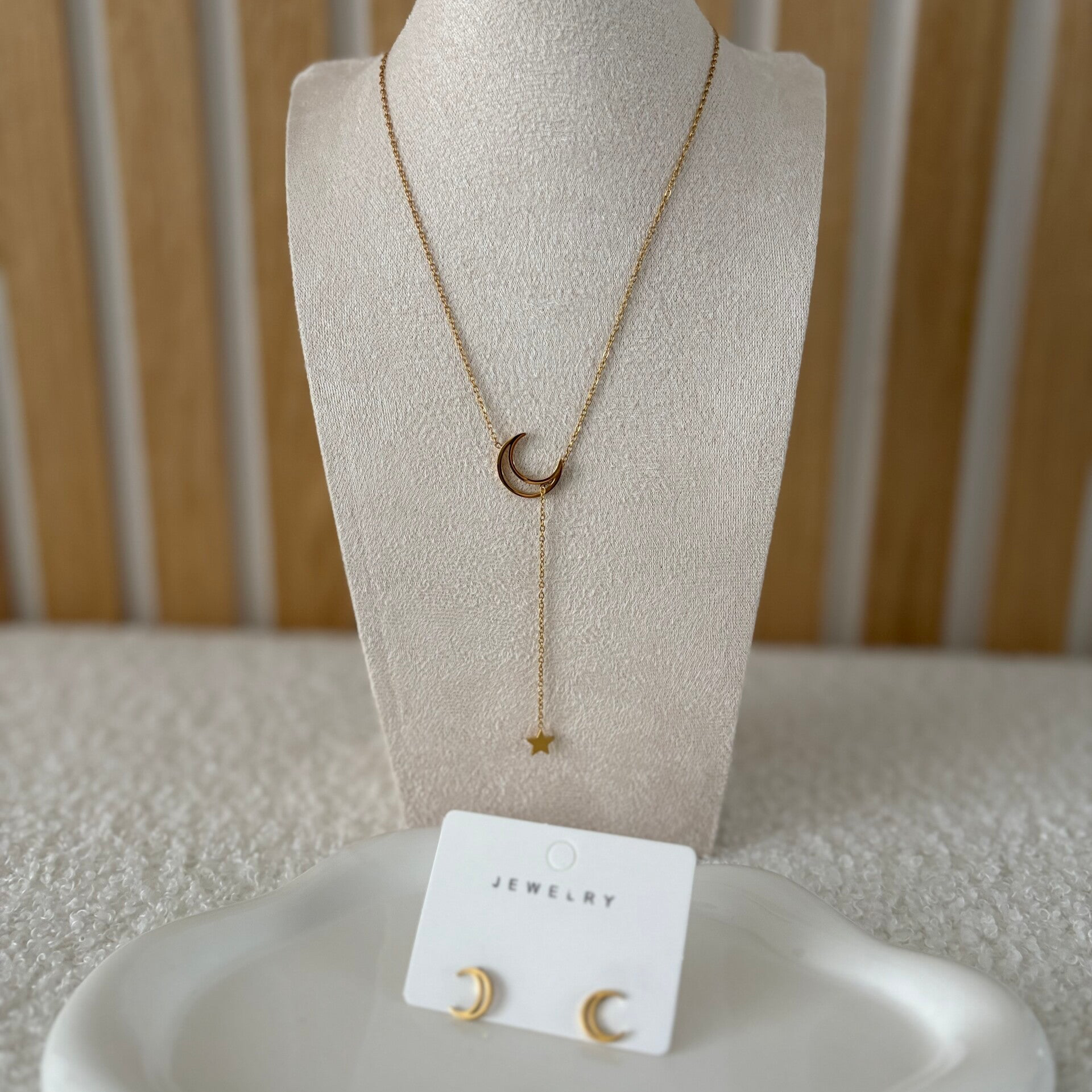 Une parure au design tendance et élégant pour femme, avec ses boucles d'oreilles minimaliste et son collier en Y en acier inoxydable.