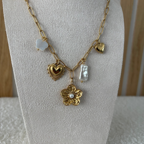 Cette chaîne pour femme doré en acier inoxydable avec ses breloques, allie style et design.