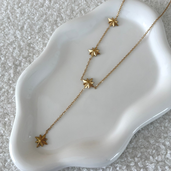 Éclat durable et résistant à l'eau, restez élégante à petit prix avec ce collier en Y et ses pendentifs dorés en acier inoxydable pour femme.